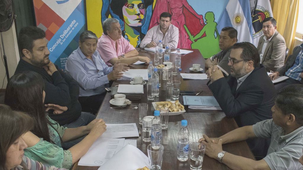 La reunión estuvo encabezada por el Presidente del cuerpo comunal, Lisandro Aguiar, acompañado por los concejales Estela Flores, Patricia Moya, Miguel Morales, José Luis Sánchez, José Luis Bejarano y Santiago Jubert, más los representantes de la Cooperativa 16 de Noviembre con su Presidente Oscar Quispe a la cabeza.