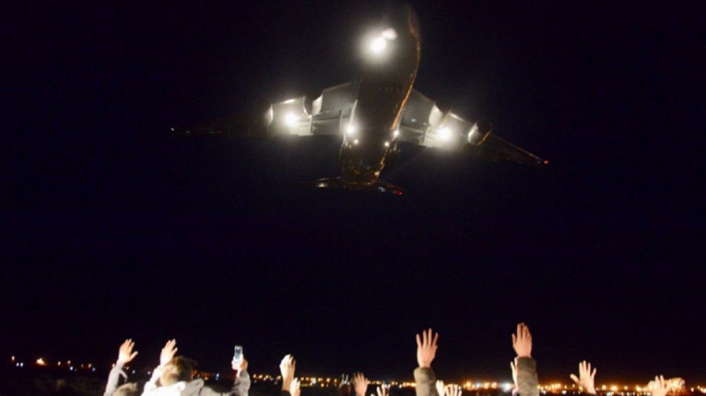 El Antonov 124 aterrizó esta noche en Comodoro Rivadavia. Transporta un grupo de rescate y un vehículo sumergible teledirigido que se sumará a la búsqueda del ARA San Juan.