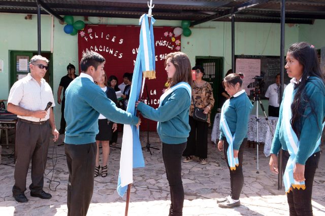 El evento que convocó a estudiantes, docentes, personal de servicio y familiares de los alumnos, tuvo como punto sobresaliente el traspaso de la bandera nacional de los abanderados salientes a quienes la portaran por el siguiente año: Ambar Luna Saad, abanderada; Eliana Gutiérrez, primera escolta y Maika Aldana Cruz, escolta segunda.