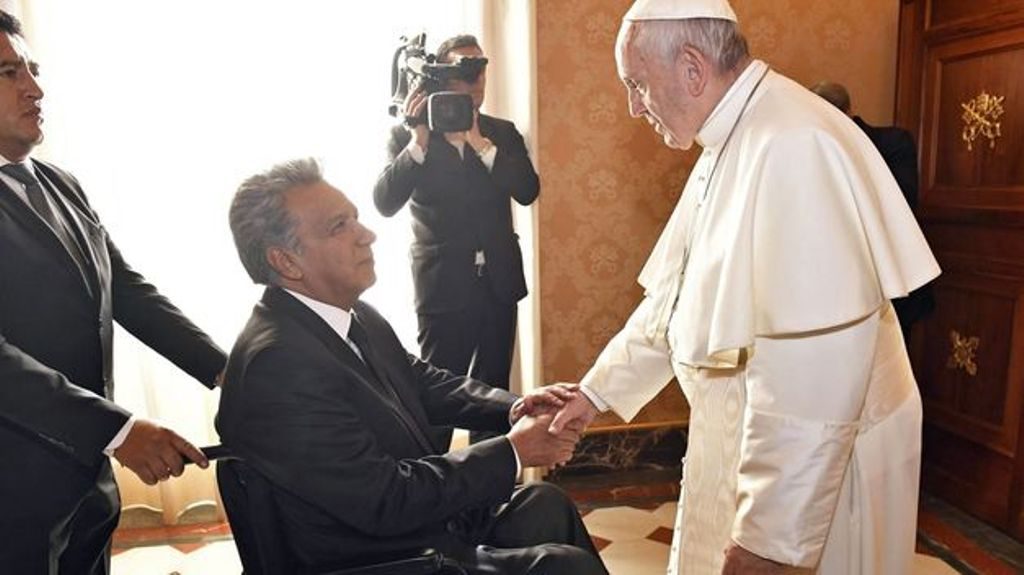 El presidente del Ecuador, Lenín Moreno, fue recibido este sábado en audiencia privada por el papa Francisco, con quien se reunió durante 42 minutos en la Biblioteca del pontífice.
