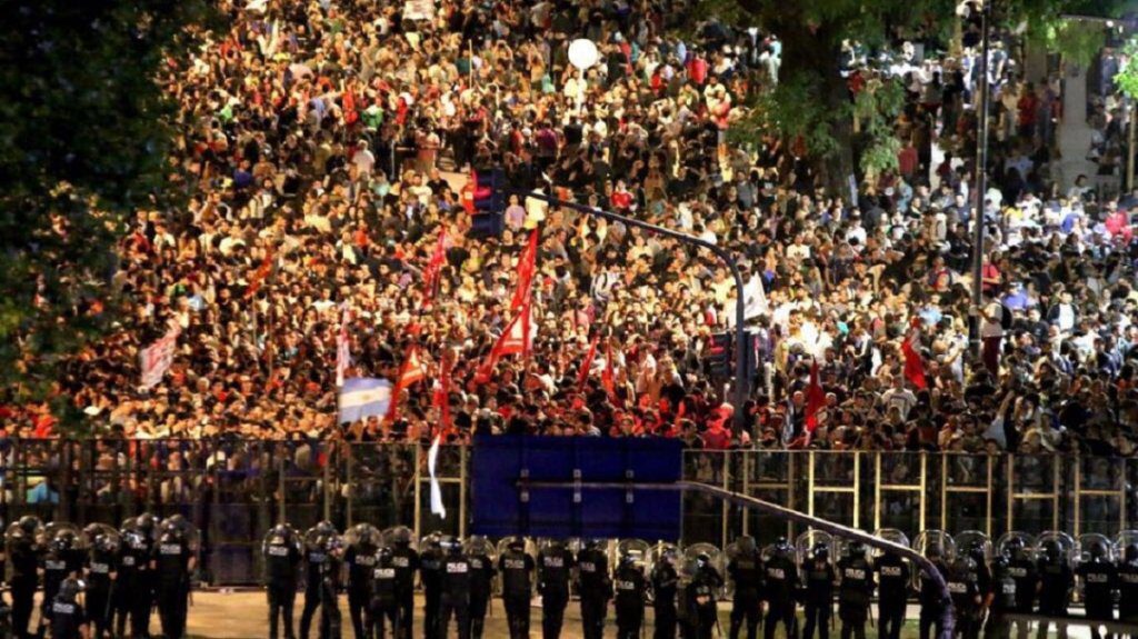A esto hay que sumarla las masivas movilizaciones, que llegaron a las puertas de la Cámara. En un principio la intención era acortar la cantidad de oradores, pero luego decidieron que hablaran los 94 para extender el debate y la situación en las calles se diluyera, aunque la estrategia no tendría mucho éxito: en la zona del Congreso hay al menos tres cuadras de gente que se acercó con cacerolas, bombos y banderas.