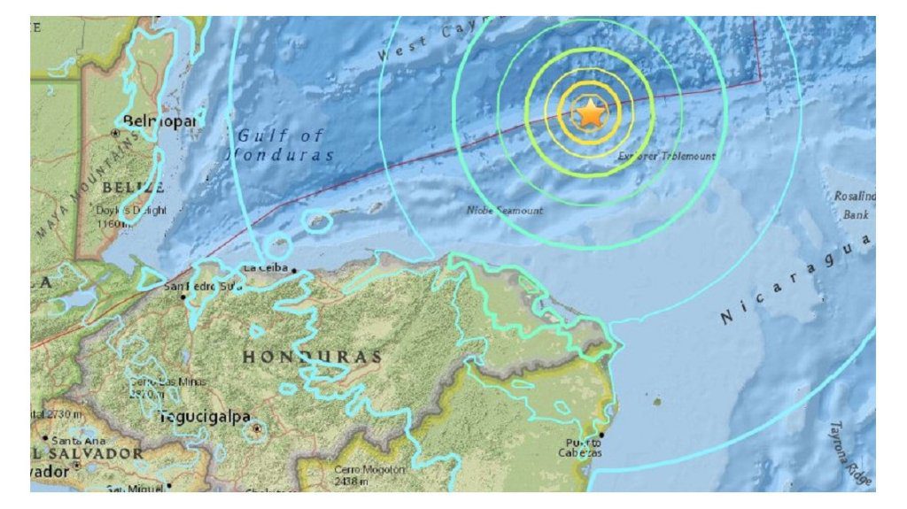 Por su parte, el Servicio Geológico de Estados Unidos (USGS, por sus siglas en inglés), que inicialmente calificó en 7,8 grados el movimiento, ubicó el epicentro del fenómeno a 201 kilómetros al norte-noreste de Barra Patuca y a 247 kilómetros al norte de Puerto Lempira.
