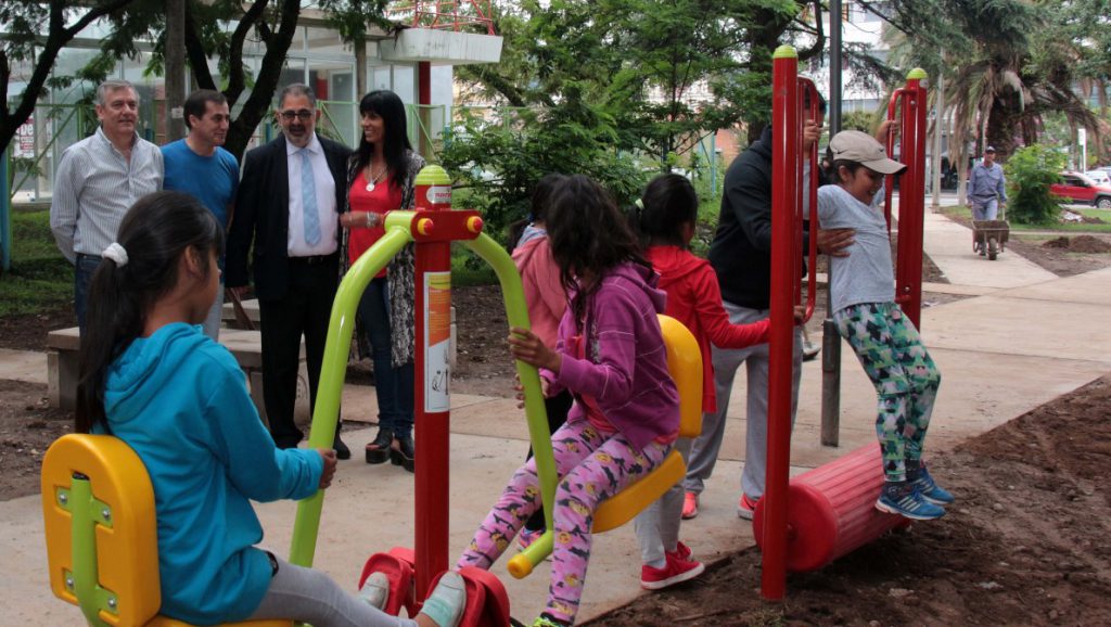 El intendente “Chuli” Jorge invitó a toda la familia al primer Gimnasio Urbano para los niños que fue puesto en funcionamiento en el querido parque. Junto al Secretario de Obras Públicas, Aldo Montiel; Secretario de Servicios Públicos, Guillermo Marenco; la Directora de Deporte y Recreación, “Kitty” Conde y niños de la colonia del parque, este espacio pone a la municipalidad como la 3ª del país en incorporar estos equipos y realizar un trabajo puntual contra la obesidad infantil.