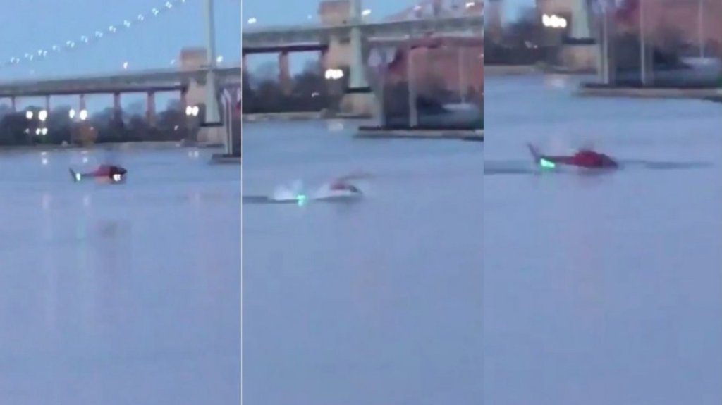 Un video tomado por un transeúnte y difundido en Twitter muestra a la aeronave roja cuando se precipitaba hacia el río, donde volcó y sus hélices golpeaban el agua mientras se hundía.