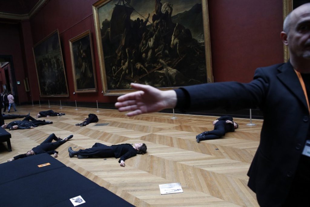 Los visitantes fueron evacuados hacia otras salas al cabo de unos diez minutos, mientras los activistas, vestidos completamente de negro, quedaban estirados en el suelo para “simbolizar a las víctimas de las actividades petroleras”, según la ONG 350.org.