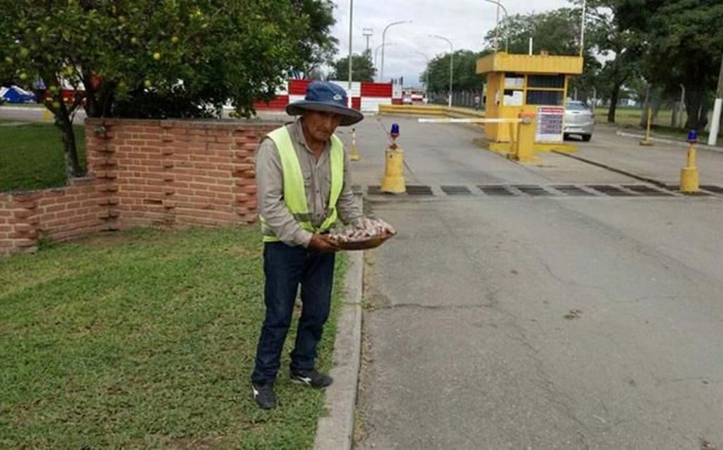 Muchos que frecuentan por viaje o por cualquier motivo el aeropuerto en Perico lo conocen, porque el abuelo lleva mucho tiempo trabajando en el lugar, allí en el acceso a la aerostación, donde ofrece sus productos a los ocupantes de vehículos que ingresan o egresan.