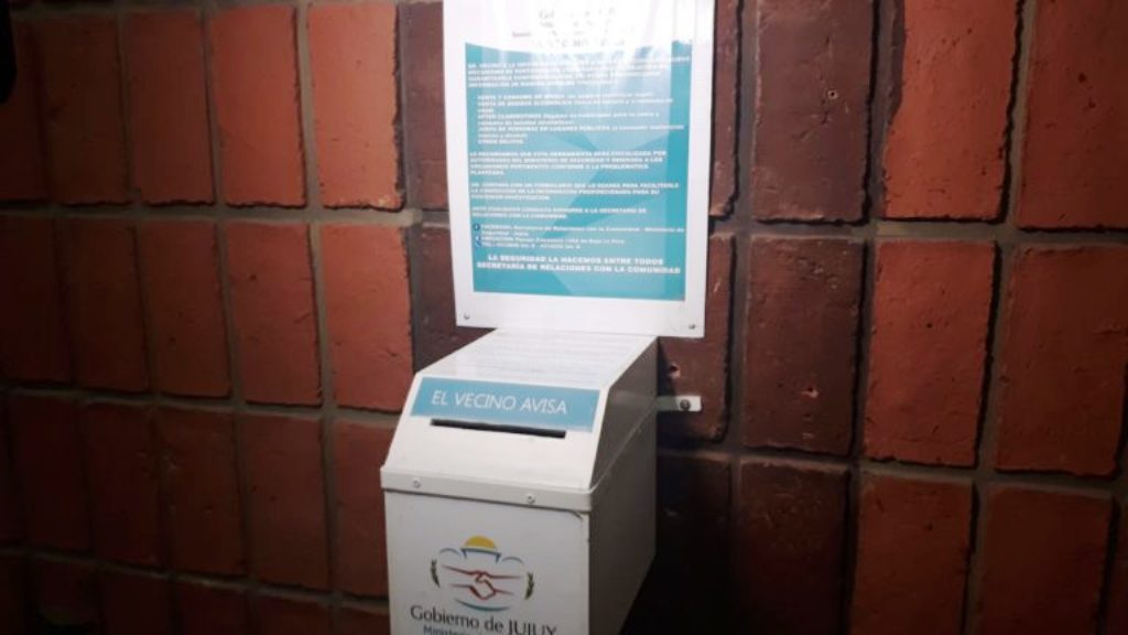 El Ministerio de Seguridad de la Provincia busca garantizar mecanismos de participación ciudadana y abrir nuevos canales de información confiables para los vecinos de una comunidad. La Secretaria de Relaciones con la Comunidad puso a disposición de municipios y comunas –en Jujuy, en la sede del Instituto de Seguros de Jujuy (ISJ)-, el programa El Vecino Avisa, cuyo objetivo es brindar herramientas a los vecinos para que puedan denunciar delitos anónimamente. Actualmente, hay dos buzones instalados, uno en el ISJ y otro en el PAMI.
