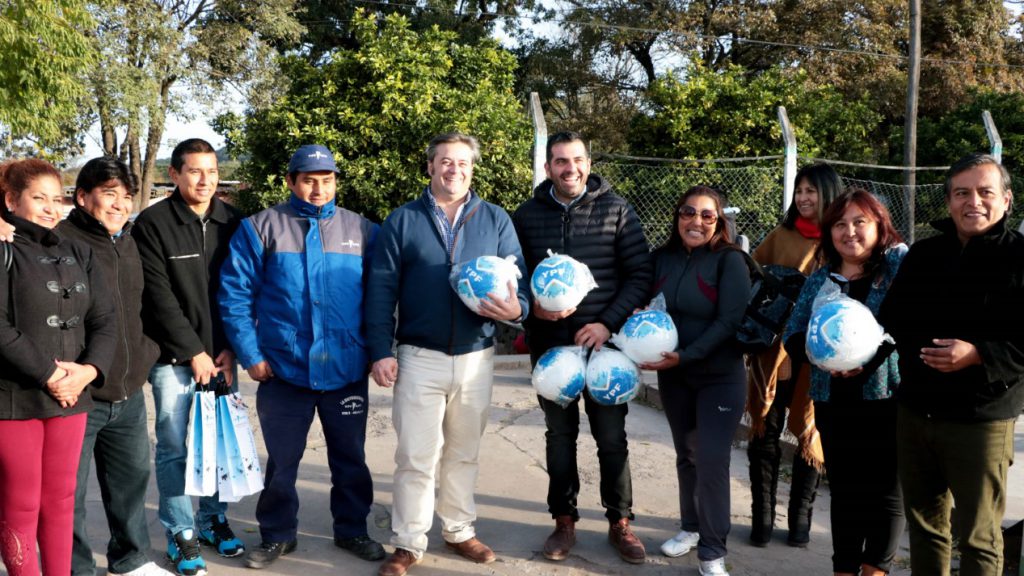 Representantes de la Empresa YPF que es la encargada de la distribución de las garrafas, hicieron entrega al CPV de pelotas del mundial e indumentaria deportiva para los vecinos que recibieron la garrafa social. Un cálido momento y un gesto muy celebrado por los vecinos presentes.