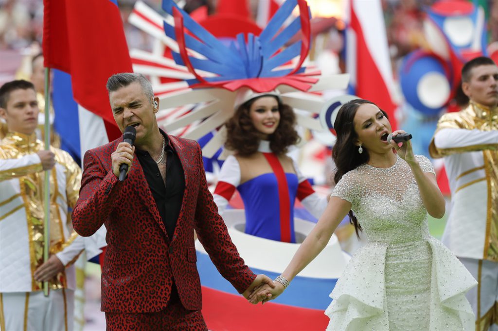 La pelota empezó a rodar ayer en Moscú, y lo continuará haciendo durante 30 días, hasta que a mediados de julio el equipo campeón levante el dorado trofeo. En ese marco, es que el tan importante torneo de fútbol requería de un espectáculo que esté a la altura, por eso, para los organizadores del Mundial de Rusia 2018, el cantante inglés Robbie Williams tenía que ser el protagonista principal de la apertura que sirvió de antesala al partido inaugural entre Rusia y Arabia Saudita.