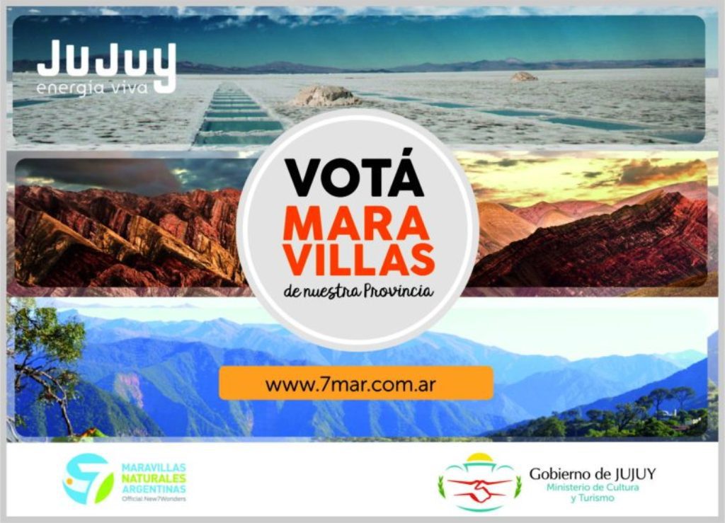 La provincia de Jujuy cuenta con 34 nominaciones en 5 de las categorías definidas en el marco de la campaña “7 Maravillas Argentinas” (www.7mar.com.ar), que organiza New 7 Wonders y que tiene como objetivo inspirar y concientizar sobre la conservación de las bellezas naturales de Argentina con carácter de excepcionales, impulsando la selección de siete íconos.