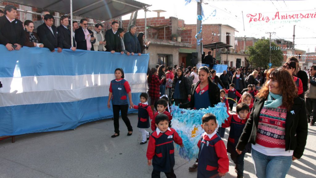 Luego, las autoridades presentes se trasladaron a la calle Lugones, escenario del emotivo desfile de instituciones intermedias, guarderías, C.D.I., Escuelas, Centros de Participaciones Vecinales, ballet de danzas, etc. Con el acompañamiento de la Banda de Música Municipal “19 de Abril”.