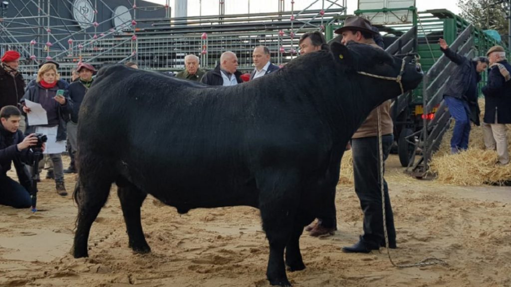 Se trata “Mbappé”, un Aberdeen Angus de 920 kilos que tiene 2 años, que arribó este lunes por la mañana a predio ferial donde durante 11 días tendrá lugar la Exposición de Ganadería, Agricultura e Industria Internacional.