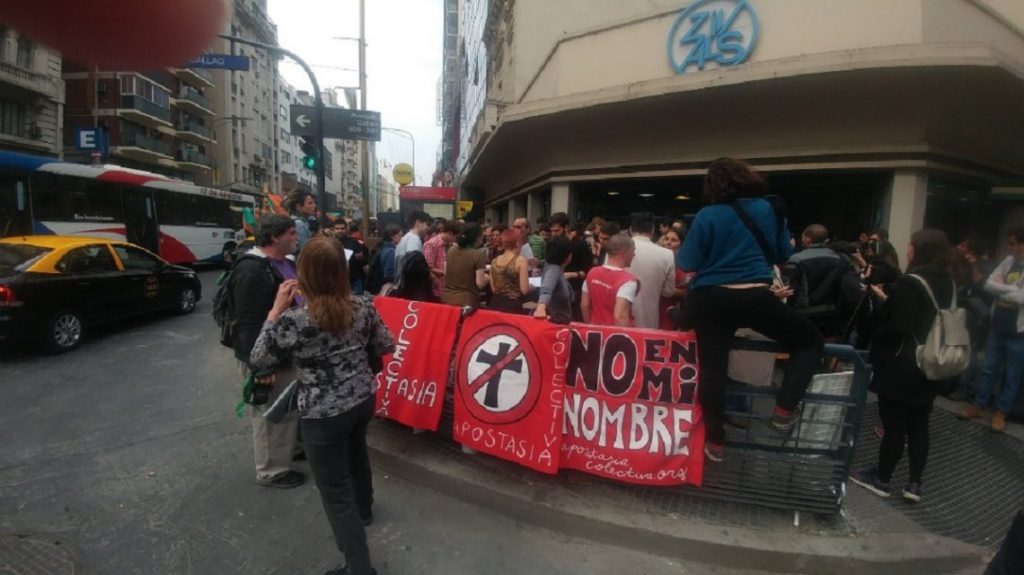 La convocatoria fue en la esquina de Corrientes y Callao, y durante toda la tarde la gente hizo fila para realizar el trámite de apostasía. En la primera hora, más de 200 personas entregaron sus papeles a la Coalición Argentina por un Estado Laico (CAEL), la organizadora de la actividad.