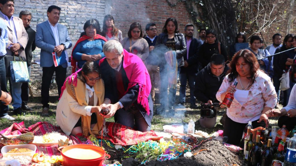 En instalaciones del edificio central de la Municipalidad, se realizó el tradicional ritual de la “Pachamama”, ceremonia que fue presidida por el el subsecretario de Gobierno, Néstor Barrios y secretario de Cultura y Turismo, José Rodríguez Bárcena.