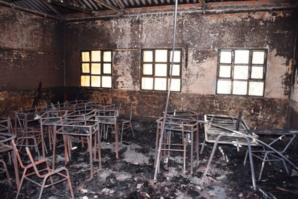 El fuego, que se originó en un depósito en el que se guardaban elementos de la carroza, se propagó a tres aulas, provocando el desprendimiento total del cielorraso, la destrucción de pisos y parte del techo, artefactos eléctricos y mobiliario.