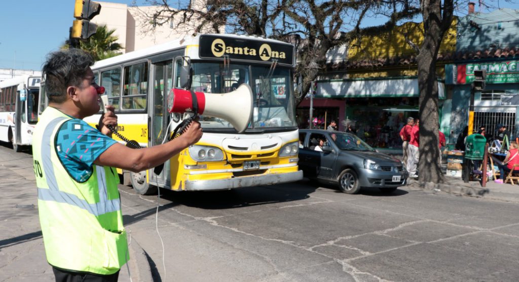 Miles de transeúntes no pudieron esquivar las indicaciones y exhortaciones que emitía el Payaso concientizador de la dirección de Tránsito y Educación Vial, dependiente de la secretaría de Servicios Públicos, durante un operativo de educación vial realizado en la intersección de calle Lavalle y avenida Hipólito Yrigoyen.