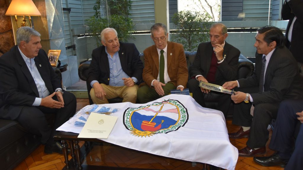 En despacho de Presidencia de la Legislatura de Jujuy, el vicegobernador, Carlos Haquim recibió la visita del presidente del Instituto Nacional Belgraniano, Manuel Belgrano Lastra, quien durante el encuentro en el que se conversó sobre historia de Jujuy, hizo entrega de un modelo de la Bandera Nacional de la Libertad Civil.