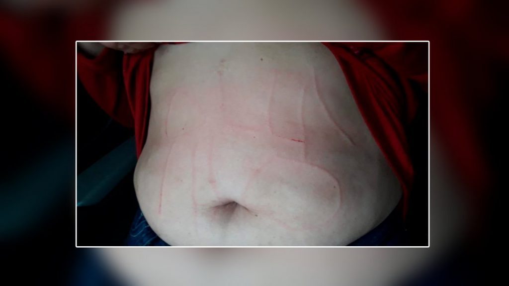 A Corina De Bonis la sorprendieron en la calle cuando se dirigía a su casa. La secuestraron, le pusieron una bolsa en la cabeza y le escribieron la panza con un punzón.