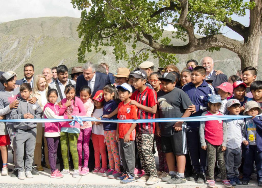 Un grupo de niños del pueblo, acompañado por el mandatario provincial, fueron los encargados de cortar las cintas de las últimas obras realizadas en el lugar, las cuales son parte del importante proyecto de reconstrucción que el Gobierno de Jujuy lleva adelante en Volcán.