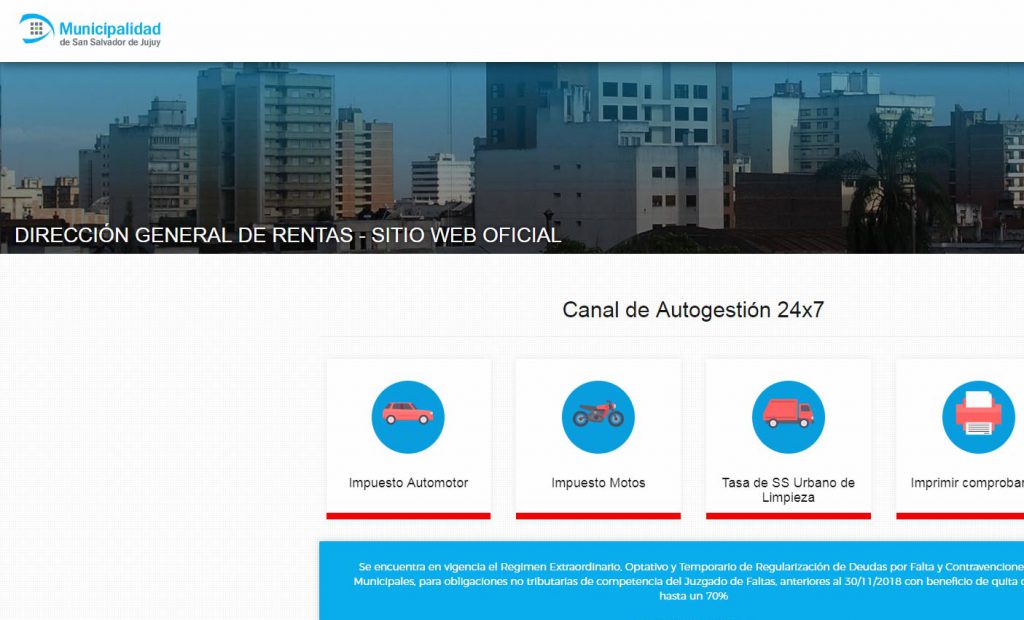 La Dirección General de Rentas de la Municipalidad de San Salvador de Jujuy informó que el Régimen de Regularización de Deudas vinculadas a impuestos al Automotor, Padrón, Mercados, Higiene Urbana, Espectáculos Públicos, se encuentra en vigencia hasta el 17 de enero.