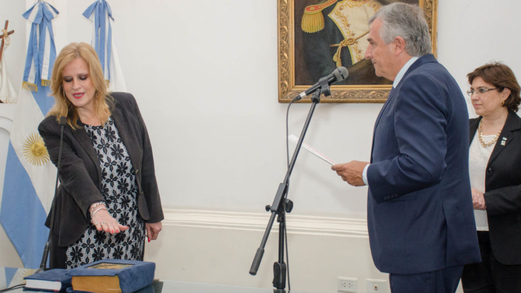 El Gobernador Gerardo Morales tomó juramento a la nueva Secretaria de Gestión Educativa, Profesora Silvina Guadalupe Camusso, quien fue designada mediante Decreto Nº 8542 E/15, en reemplazo de Aurora Brajcich.
