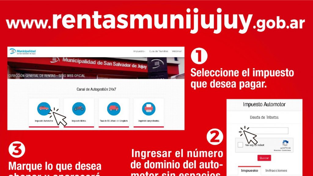 Por consiguiente, desde la Dirección General de Rentas, dependiente de la Secretaría de Hacienda, detallaron los pasos a seguir ingresando a la página www.rentasmunijujuy.gob.ar