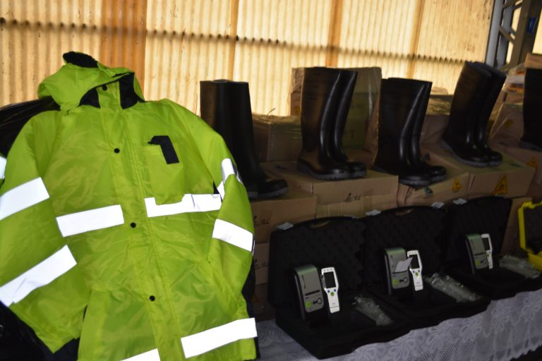 Entre los elementos entregados se encuentran una carpa tenso inflable y un parque temático vial para educación vial, botas para lluvia, remeras, camperas, computadoras, entre otros.