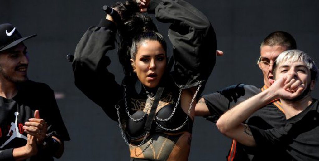Toda de negro, al igual que sus bailarines, Cande tuvo unos primeros minutos correctos, incluso probando con algunos pasajes de baile y sensualidad. Ahí sonó No me sueltes y Haters, que cantó junto a Femigansta.