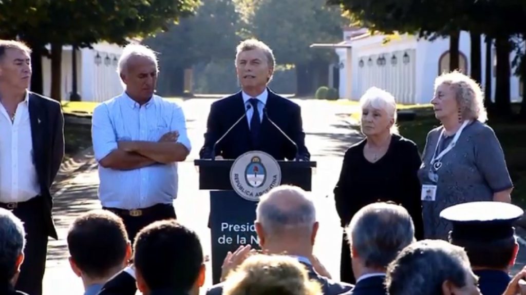 Macri también destacó el Plan Humanitario destinado a identificar a los 122 soldados enterrados en el Cementerio de Darwin, que ya lleva 112 reconocimientos positivos. “Pudimos empezar a saldar una deuda muy dolorosa que teníamos con nuestros héroes y sus familias”, dijo, recordó que el plan “tiene muchos años”, pero recién en 2016 empezó a “alcanzar resultados”.