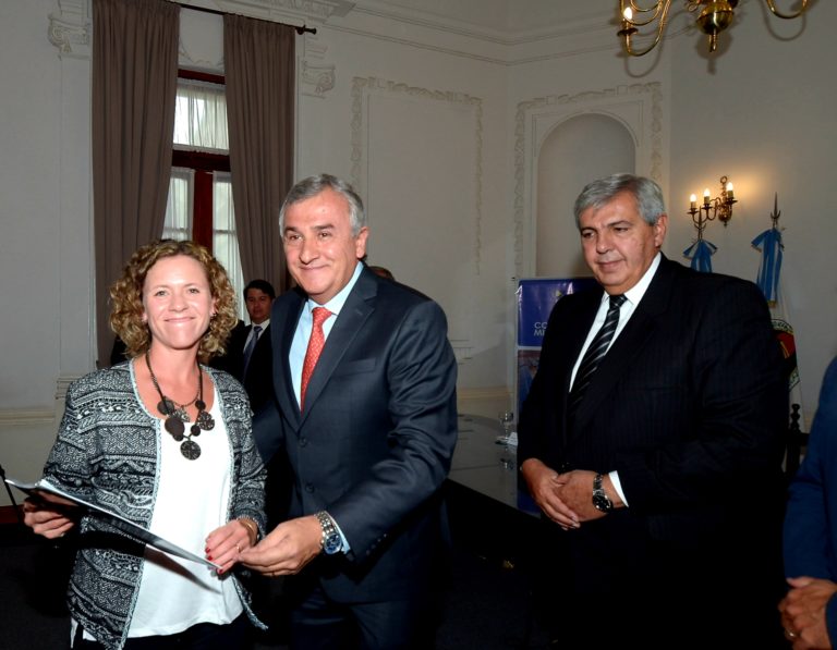 El acto de entrega, desarrollado en el Salón Blanco de Casa de Gobierno, fue presidido por el Mandatario provincial, quien estuvo acompañado por el vicegobernador; Carlos Haquim; los ministros de Desarrollo Económico y Producción, Juan Carlos Abud Robles y de Cultura y Turismo, Federico Posadas; el presidente del bloque de diputados de Cambia Jujuy, Alberto Bernis y el gerente General del Banco de Desarrollo de Jujuy, Juan Macedo.