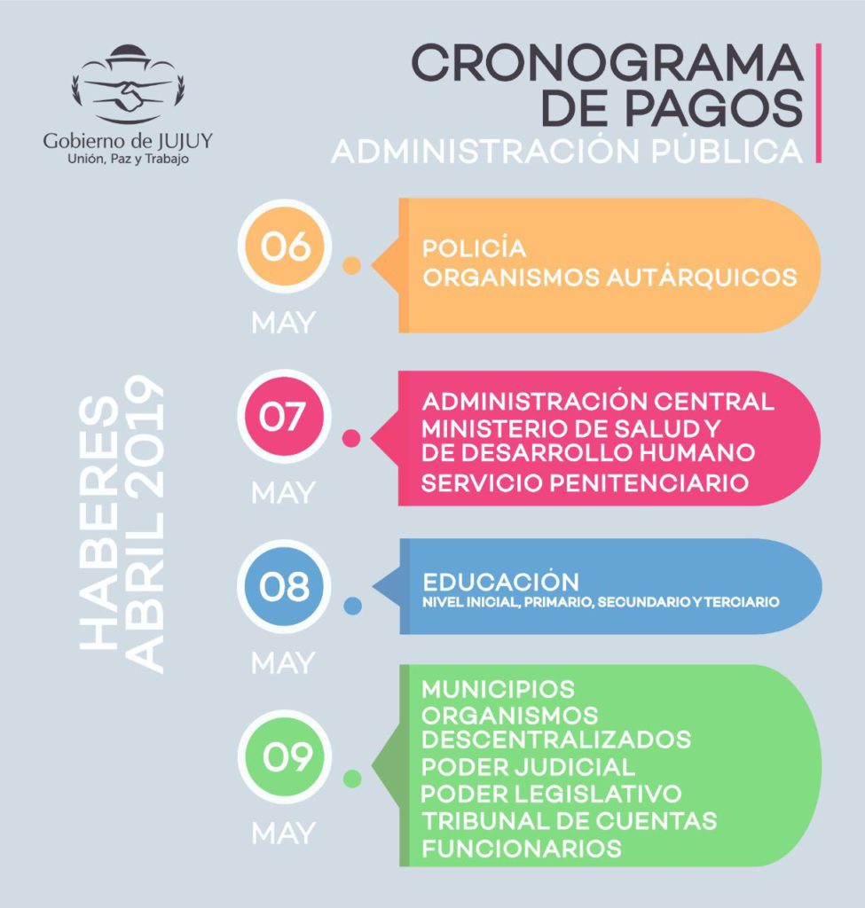 La Tesorería de la Provincia anunció el pago de salarios de los trabajadores de la Administración Pública de Jujuy que dará inicio el próximo lunes.