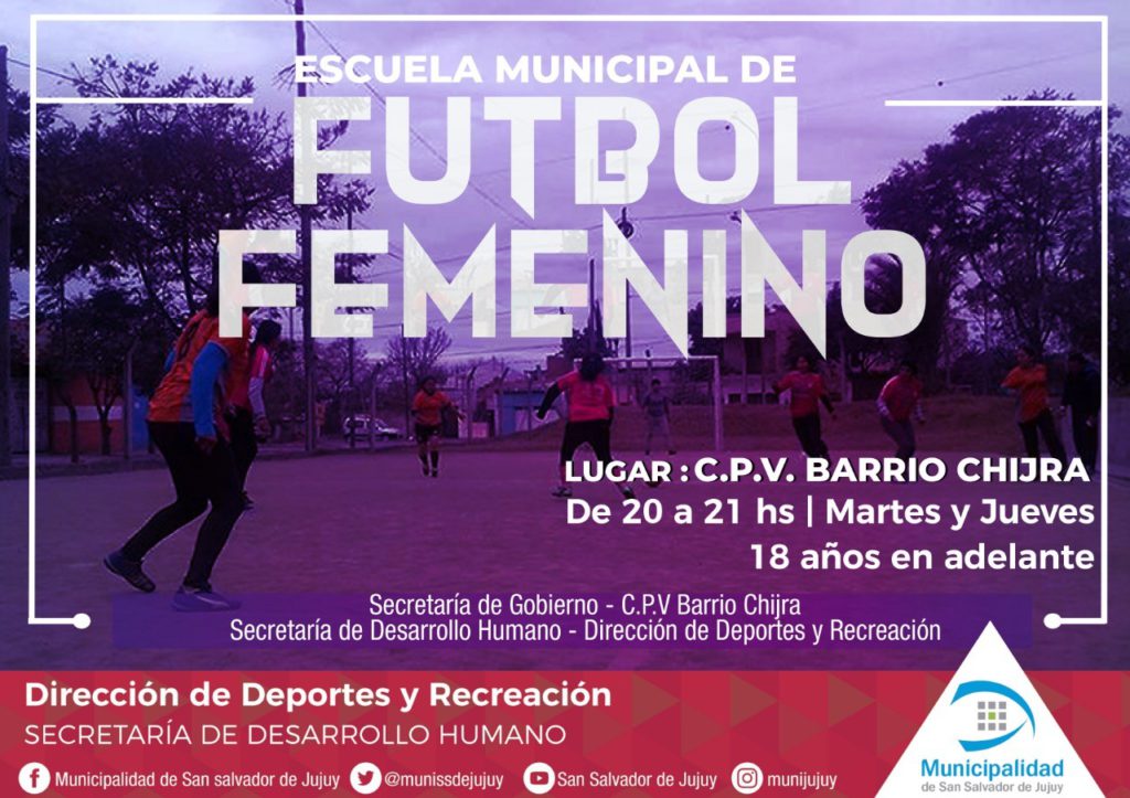 Cabe recordar que las actividades de la Escuela Municipal de Fútbol Femenino se realizarán en la cancha de piso sintético “Hugo Cid Conde” del Centro de Participación Vecinal del barrio Chijra, a cargo de los profesores Leo Calvetti y Claudia López.