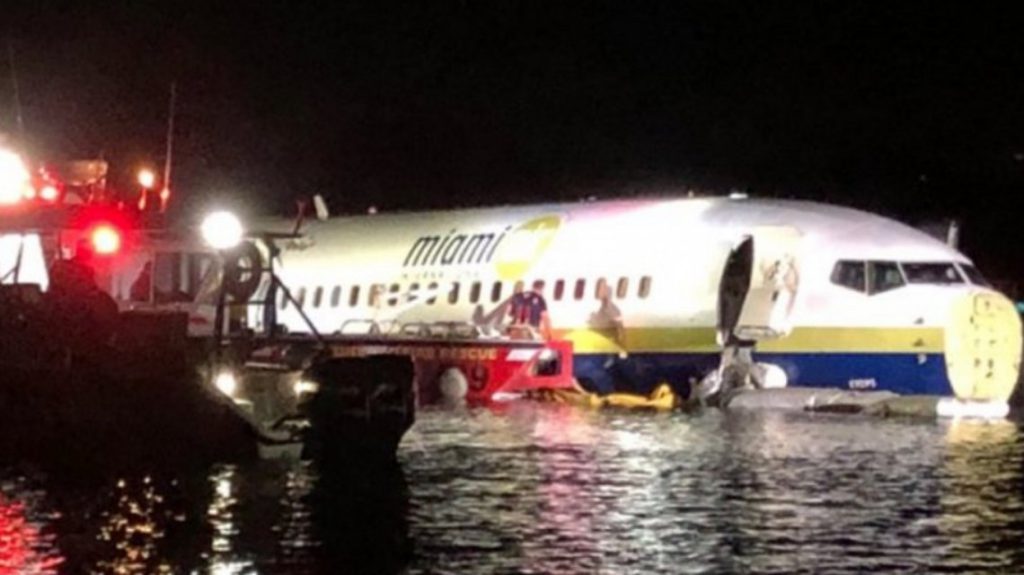 La aeronave, un Boeing 737, se deslizó fuera de la pista hacia el río Sain Johns cerca del aeropuerto naval de Jacksonville, Florida, a las 21.40 (18 hora argentina), cuando se disponía a aterrizar, informó la oficina del sherif del condado.