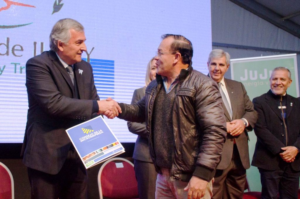 Dos emprendimientos que se asentarán en el predio industrial recibieron créditos del Consejo de la Microempresa por 2.500.000 pesos cada uno. La entrega de los cheques, estuvo encabezada por el gobernador Gerardo Morales y se realizó durante el acto de inicio de construcción de la fábrica de litio.