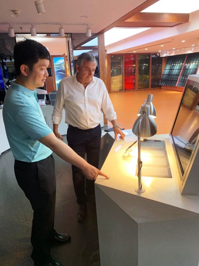 “Esta es una de las empresas más avanzada en lo que es fabricación de paneles solares, tejas solares, baldosas solares, vidrios, techos y pisos que generan energía solar”, explicó Morales.