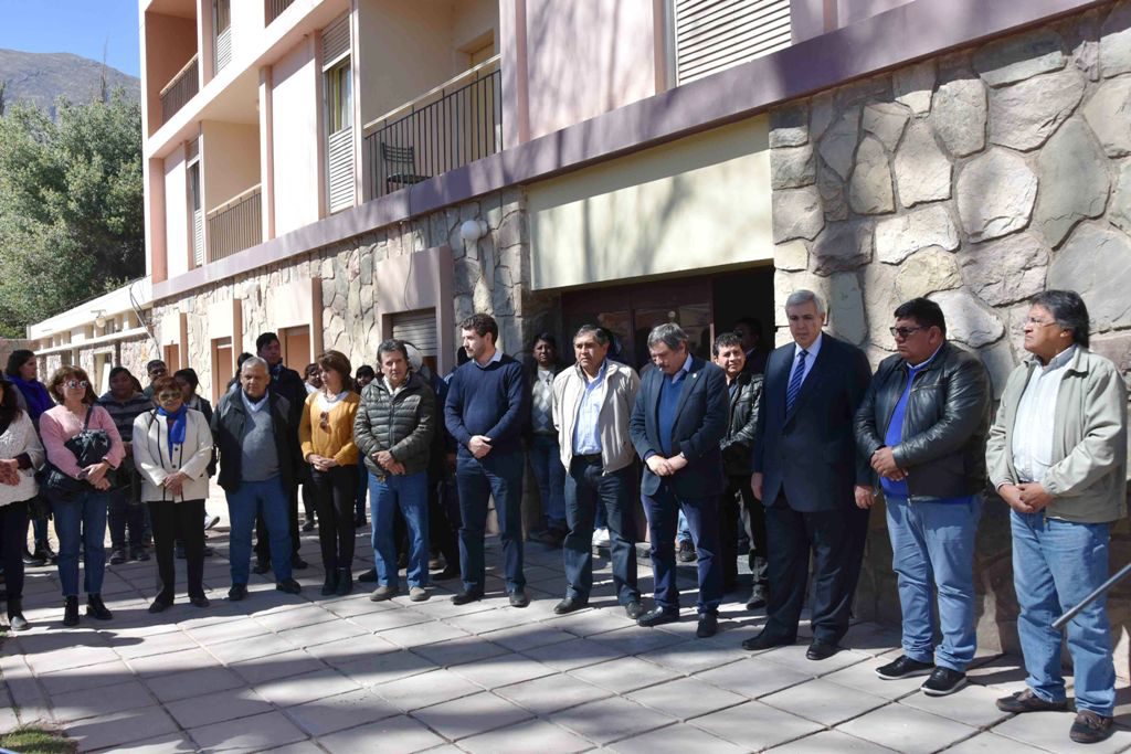 Inauguraron las nuevas aulas de la Expansión Académica de la Universidad Nacional de Jujuy en Tilcara. El vicegobernador de la provincia, Carlos Haquim, acompañó el acto junto al rector de la Universidad Nacional de Jujuy, Rodolfo Tecchi, y al intendente de Tilcara, Ricardo Romero.