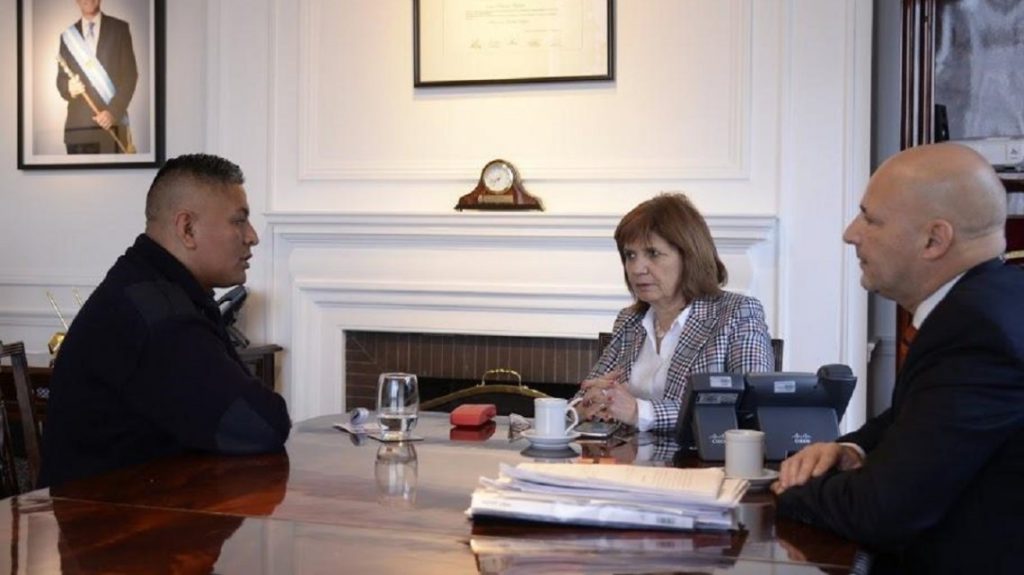 “Desde el primer día de gestión adoptamos un lema: cuidar a quienes nos cuidan. Recibí a Luis Chocobar, está enfermo, su caso le afectó la salud. Le ratifiqué nuestro compromiso: estamos a su lado y al lado de todos los policías que cuidan a la gente y actúan según su deber”, escribió Bullrich en su cuenta de Twitter junto a una foto en la que se lo puede con Chocobar.