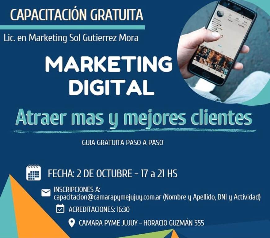 Este miércoles 2 de octubre realizará la capacitación gratuita sobre “Marketing Digital”, donde los asistentes aprenderán las claves para maximizar las ventas de cualquier producto o servicio y llegar a potenciales clientes a través de las plataformas digitales más utilizadas.