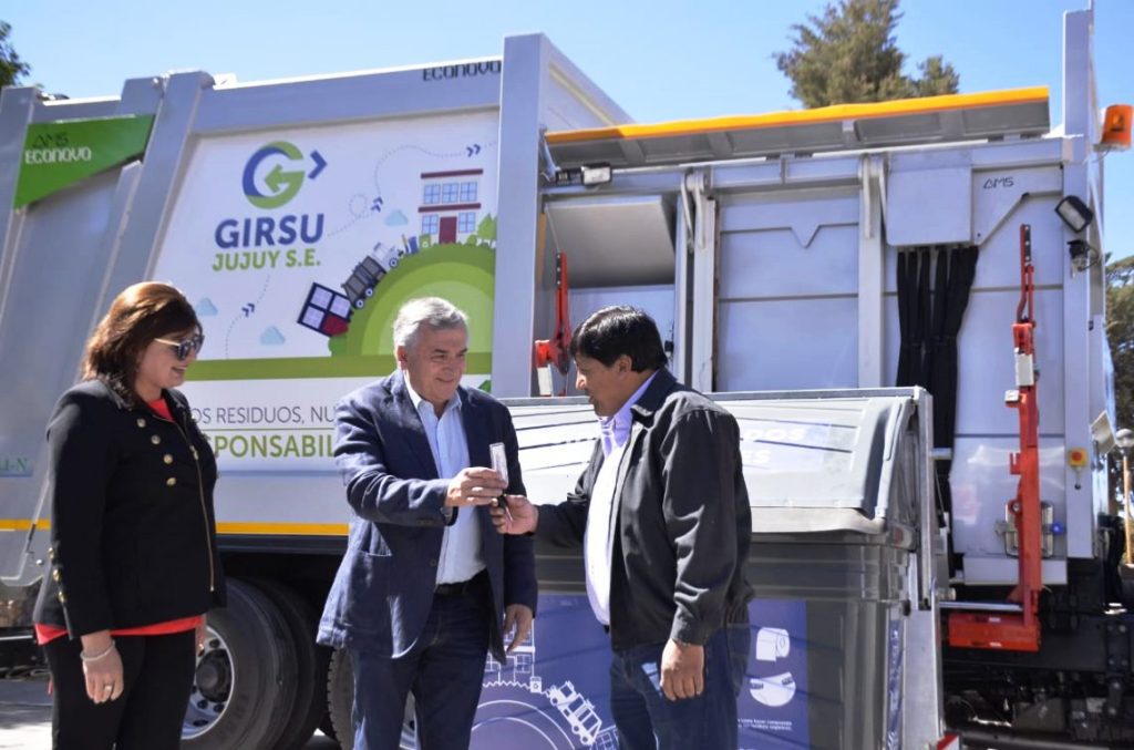 En Humahuaca, Tumbaya y Purmamarca, el gobernador, Gerardo Morales, realizó la entrega de camiones para recolección y tratamiento de residuos sólidos urbanos, en el marco del Programa de Gestión Integral de Residuos Sólidos Urbanos y Valorización Energética que implementa la Provincia con el financiamiento del Banco Europeo de Inversiones y la cooperación de la Unión Europea.