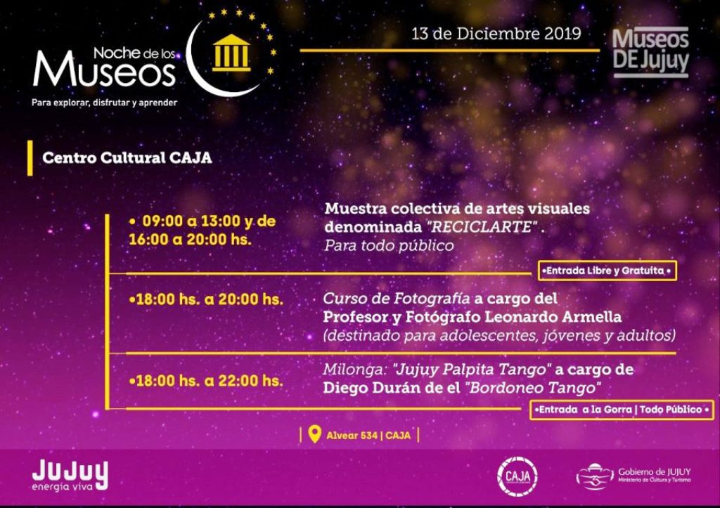 Organizada por la Secretaria de Cultura, dependiente del Ministerio de Cultura y Turismo, se cumplirá hoy desde horas 18,30 en distintos espacios culturales de nuestra provincia, la octava edición de la Noche de los Museos.