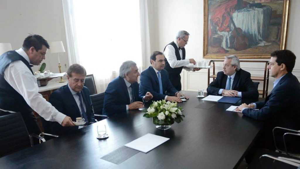 El encuentro tuvo lugar en la Casa Rosada y también participaron los gobernadores de Rodolfo Suárez, de Mendoza; y Gustavo Valdés, de Corrientes; además del ministro del Interior de la Nación, Eduardo De Pedro.