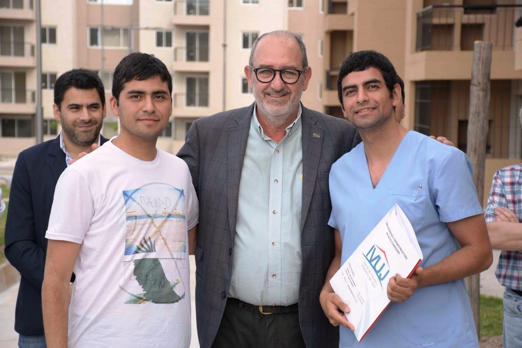 Acompañaron la entrega, el secretario de Infraestructura, José Suárez; los vocales Social y Técnico del IVUJ, Renán Dada y José Luis Paiquez respectivamente; el presidente del Concejo Deliberante, Lisandro Aguiar; Raúl Ulloa por la empresa JUMI constructora de los departamentos; y familiares de los adjudicatarios.