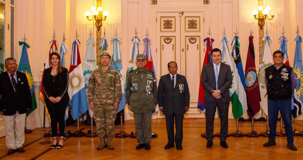 Debido a la cuarentena obligatoria por la pandemia de Covid-19, este año el homenaje por la conmemoración a los caídos y veteranos de la Guerra de Malvinas se realizó en el Salón de la Bandera de Casa de Gobierno.