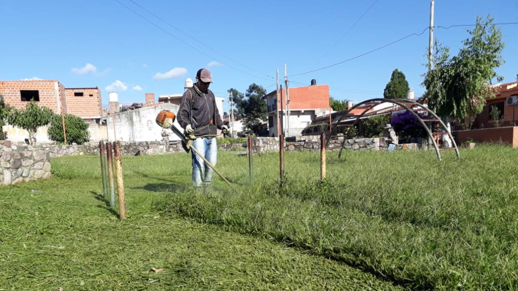 Cuadrillas de la dirección de Espacios Verdes, dependiente de la secretaría de Servicios Públicos, llevan adelante trabajos de desmalezado en los barrios Coronel Arias, Ciudad de Nieva, Los Perales, Chijra, Mariano Moreno y San Pedrito, tras el temporal.
