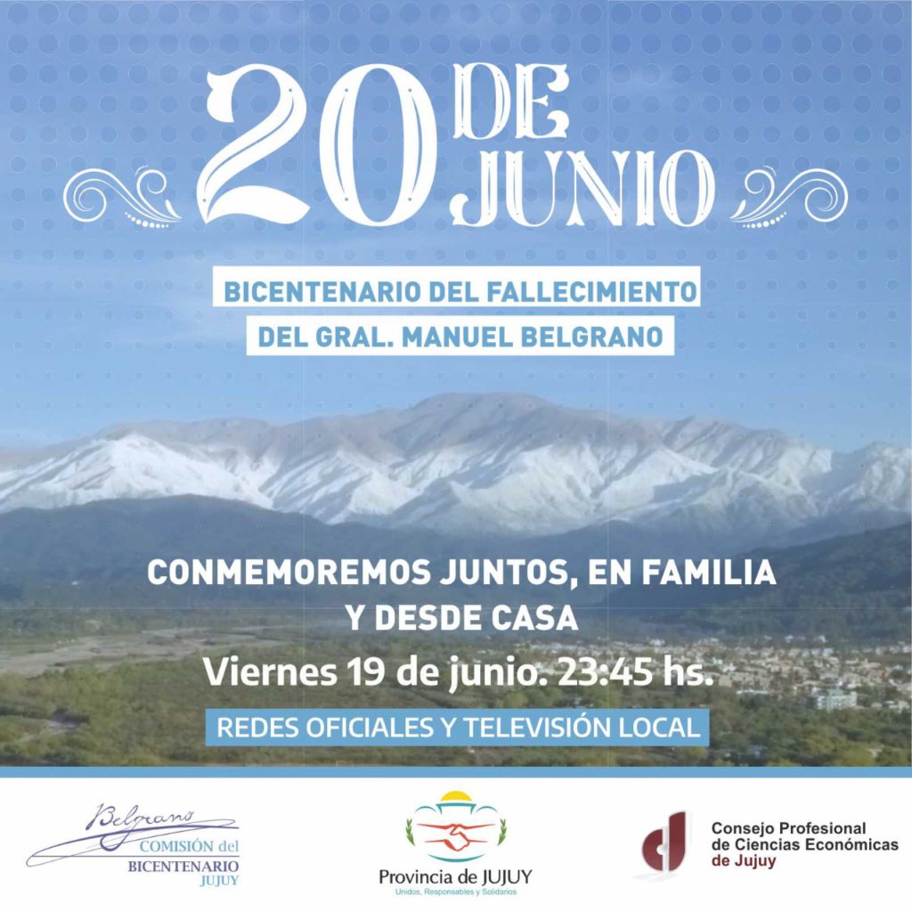En el marco de los festejos por la conmemoración por el Día de la Bandera, en el año de su bicentenario, y merced de la situación epidemiológica que afronta la provincia, la Comisión del Bicentenario compuesta por organismo públicos y privados, determinó la realización de una producción audiovisual para esta noche desde las 23.45, simultáneamente, por redes sociales y canales locales.