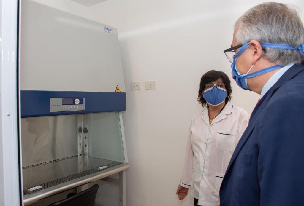 El ministro Bouhid detalló que la capacidad de testeos diarios que puede procesar este nuevo centro de estudios es de aproximadamente 200 muestras, que se suman a la capacidad que tienen los otros laboratorios llegando a la cifra de mil análisis diarios del tipo PCR.