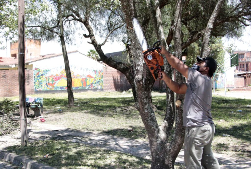 La dirección de Espacios Verdes, dependiente de la secretaría de Servicios Públicos, continúa con el mantenimiento de plazas y parques en la Capital, según la agenda establecida, el personal municipal se acercó a la plaza Gendarmería Nacional, ubicada en av. Párroco Marshke, entre av. 10 de junio y Sajama.