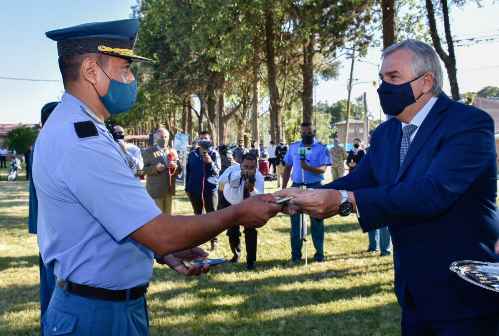 El gobernador Morales, en su discurso, expresó que “antes no se realizaba esta ceremonia y desde que asumimos la gestión, cada año queremos prestigiar y reconocer la trayectoria del personal policial como penitenciario en este caso”.