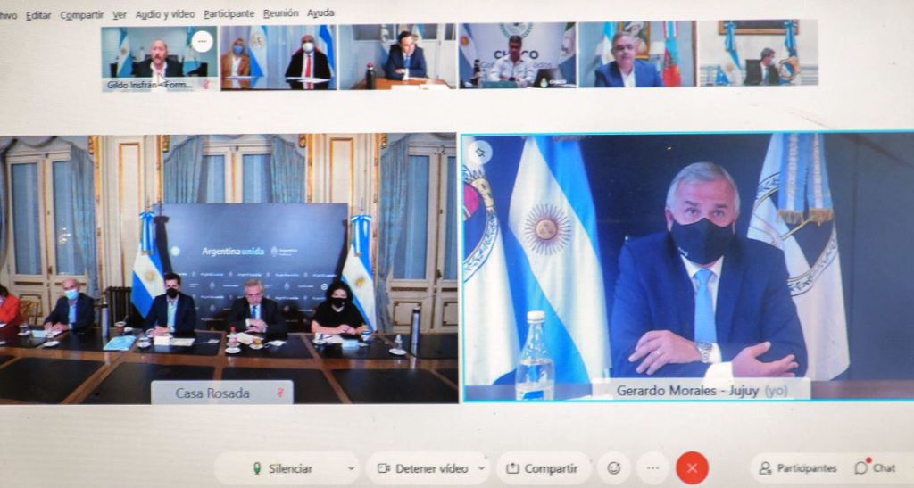 Por su parte, el gobernador Morales detalló los alcances de las diversas medidas que se implementaron en las últimas semanas tras la puesta en marcha del último Decreto de Necesidad y Urgencia emitido por Nación y explicó cómo se está trabajando para hacer frente a la pandemia.