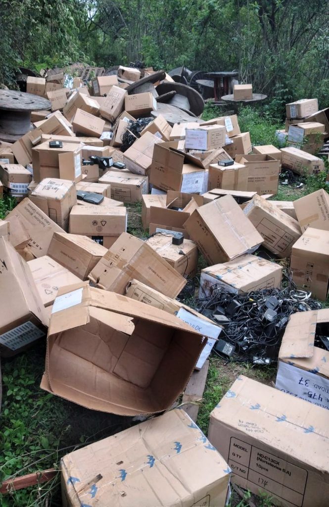 El Ministerio de Ambiente, a través de la Secretaría de Calidad Ambiental, procedió a realizar una fiscalización en un sector del Barrio Campo Verde de la ciudad capital, donde una empresa de comunicación audiovisual local depositó de manera ilegal y en un área pública, Residuos de Aparatos Eléctricos y Electrónicos (RAEE’s), según el testimonio de una persona particular que publicó la denuncia vía redes sociales.